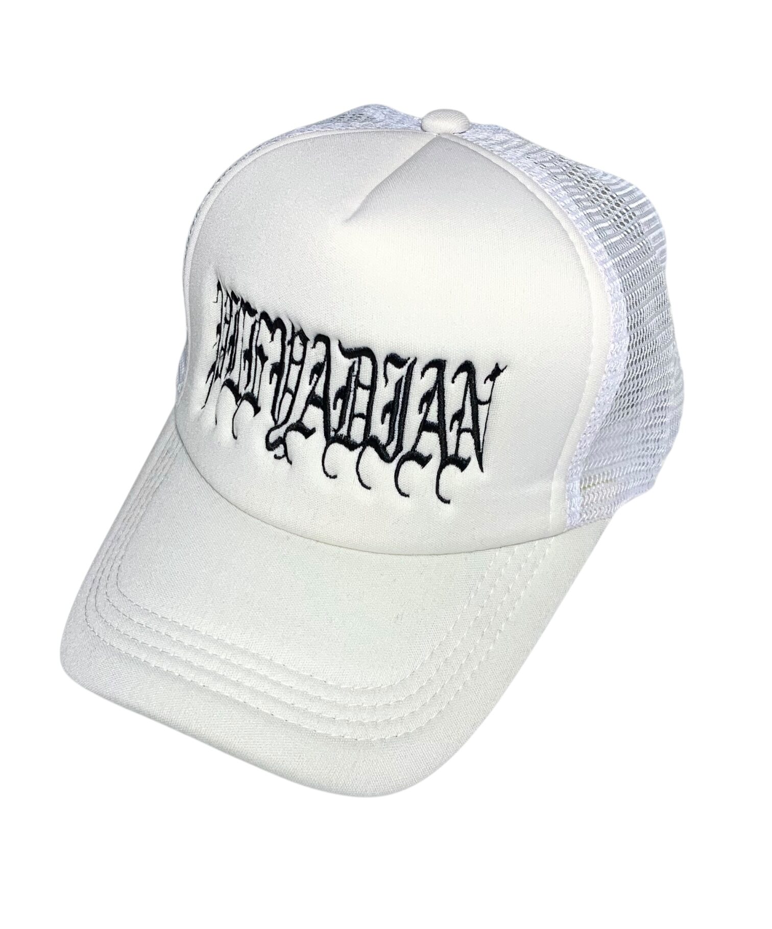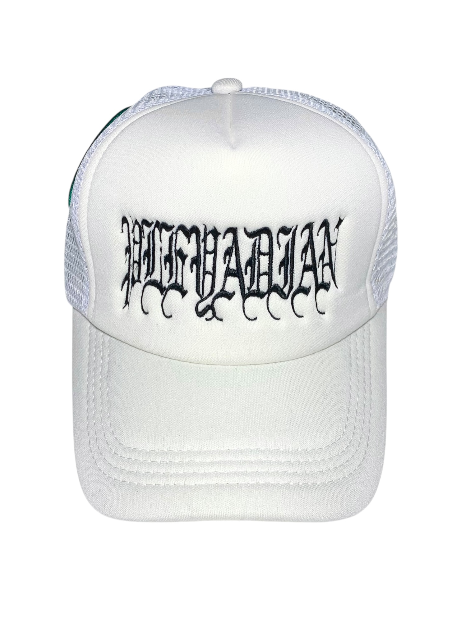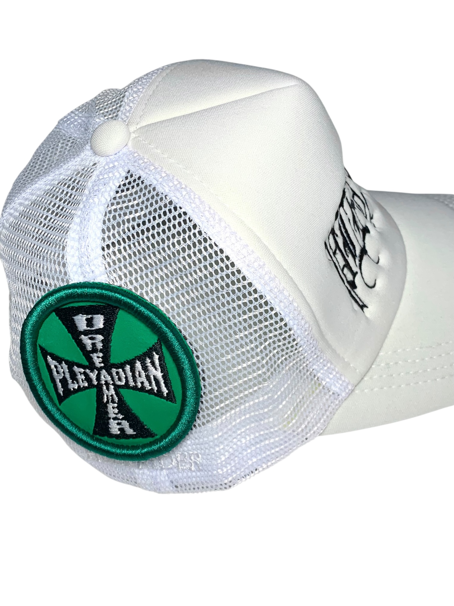 Gorra Trucker blanca , con parche en la parte trasera.